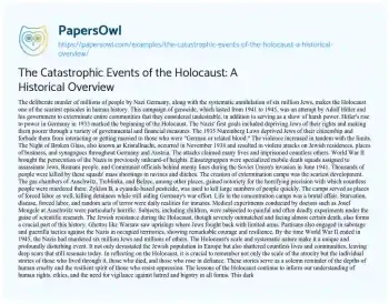 The Catastrophic Events of the Holocaust: A Historical Overview. (2024, May 12). Retrieved from https://hub.papersowl.com/examples/the-catastrophic-events-of-the-holocaust-a-historical-overview/