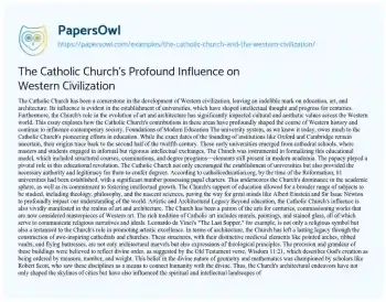 The Catholic Church's Profound Influence on Western Civilization. (2020, May 07). Retrieved from https://hub.papersowl.com/examples/the-catholic-church-and-the-western-civilization/