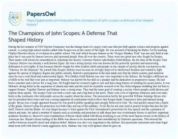 The Champions of John Scopes: A Defense That Shaped History. (2024, Jul 06). Retrieved from https://hub.papersowl.com/examples/the-champions-of-john-scopes-a-defense-that-shaped-history/