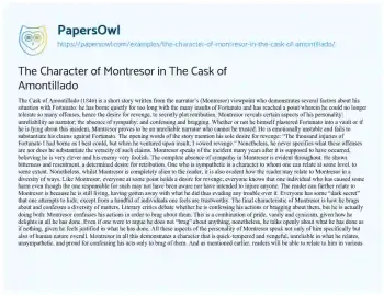 This essay will analyze the character of Montresor in Edgar Allan Poe’s “The Cask of Amontillado,” exploring his motivations, psychological traits, and the symbolic implications of his actions in the context of Poe’s thematic concerns. On PapersOwl, there’s also a selection of free essay templates associated with The Cask Of Amontillado.