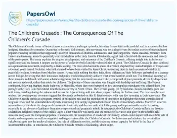 The Childrens Crusade : The Consequences Of The Children's Crusade. (2024, Apr 14). Retrieved from https://hub.papersowl.com/examples/the-childrens-crusade-the-consequences-of-the-childrens-crusade/