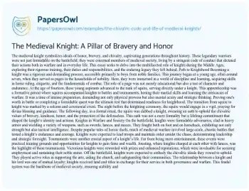 The Medieval Knight: A Pillar of Bravery and Honor. (2024, Jul 06). Retrieved from https://hub.papersowl.com/examples/the-chivalric-code-and-life-of-medieval-knights/