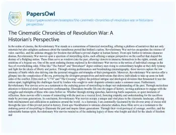 The Cinematic Chronicles of Revolution War: A Historian's Perspective. (2024, Mar 01). Retrieved from https://hub.papersowl.com/examples/the-cinematic-chronicles-of-revolution-war-a-historians-perspective/