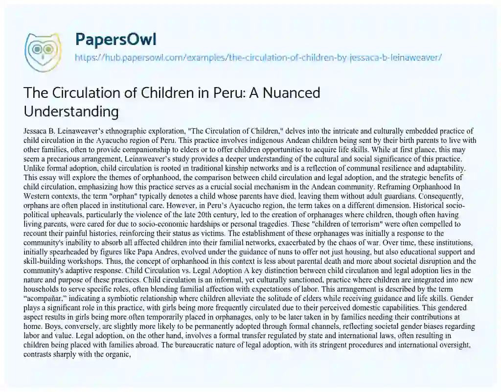 The Circulation of Children in Peru: A Nuanced Understanding. (2021, Mar 27). Retrieved from https://hub.papersowl.com/examples/the-circulation-of-children-by-jessaca-b-leinaweaver/