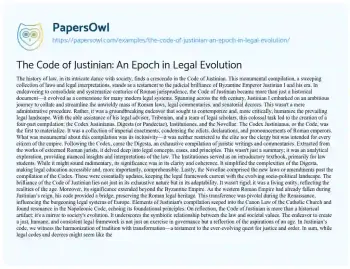 The Code of Justinian: An Epoch in Legal Evolution. (2023, Oct 26). Retrieved from https://hub.papersowl.com/examples/the-code-of-justinian-an-epoch-in-legal-evolution/