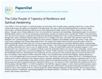 The Color Purple: A Tapestry of Resilience and Spiritual Awakening. (2021, Apr 21). Retrieved from https://hub.papersowl.com/examples/the-color-purple-plot-analysis/