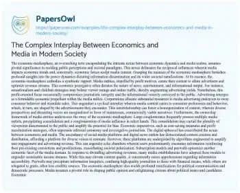 In summation, the economic-mediasphere epitomizes the intricate interplay between economic exigencies and media paradigms. While presenting challenges vis-à-vis media quality, plurality, and information accessibility, it concurrently offers prospects for innovation and democratic participation. By comprehending and critically engaging with this paradigm, we can navigate the media landscape more adeptly and advocate for a more equitable and enlightened society.