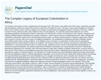 The Complex Legacy of European Colonization in Africa. (2024, Jun 01). Retrieved from https://hub.papersowl.com/examples/the-complex-legacy-of-european-colonization-in-africa/