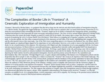 The Complexities of Border Life in "Frontera": A Cinematic Exploration of Immigration and Humanity. (2024, Jun 17). Retrieved from https://hub.papersowl.com/examples/the-complexities-of-border-life-in-frontera-a-cinematic-exploration-of-immigration-and-humanity/