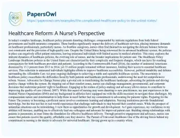 Healthcare Reform: A Nurse's Perspective. (2022, Dec 16). Retrieved from https://hub.papersowl.com/examples/the-complicated-healthcare-policy-in-the-united-states/