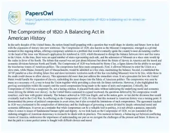 The Compromise of 1820: A Balancing Act in American History. (2024, Mar 25). Retrieved from https://hub.papersowl.com/examples/the-compromise-of-1820-a-balancing-act-in-american-history/