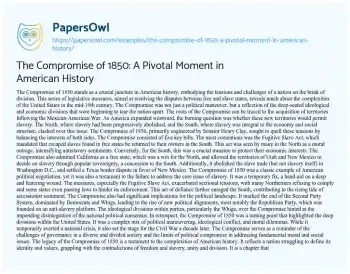 The Compromise of 1850: A Pivotal Moment in American History. (2024, Jan 09). Retrieved from https://hub.papersowl.com/examples/the-compromise-of-1850-a-pivotal-moment-in-american-history/