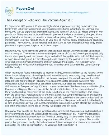 The Concept of Polio and The Vaccine Against It. (2023, Mar 27). Retrieved from https://hub.papersowl.com/examples/the-concept-of-polio-and-the-vaccine-against-it/
