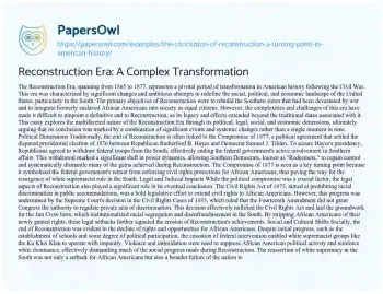 Reconstruction Era: A Complex Transformation. (2024, Jun 28). Retrieved from https://hub.papersowl.com/examples/the-conclusion-of-reconstruction-a-turning-point-in-american-history/