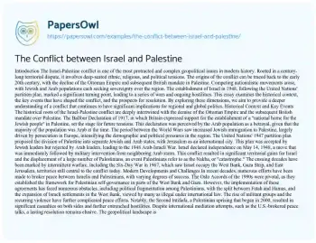 The Conflict between Israel and Palestine. (2024, Dec 27). Retrieved from https://hub.papersowl.com/examples/the-conflict-between-israel-and-palestine/
