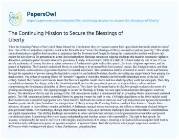 The Continuing Mission to Secure the Blessings of Liberty. (2024, May 21). Retrieved from https://hub.papersowl.com/examples/the-continuing-mission-to-secure-the-blessings-of-liberty/