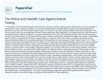 The Ethical and Scientific Case Against Animal Testing. (2019, Nov 11). Retrieved from https://hub.papersowl.com/examples/the-controversy-of-animal-testing/