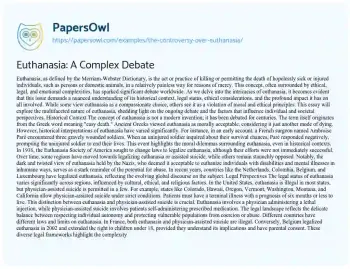Euthanasia: A Complex Debate. (2020, Apr 12). Retrieved from https://hub.papersowl.com/examples/the-controversy-over-euthanasia/