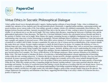 This essay explores their discourse, examining the intricacies of defining virtue and the philosophical implications of their discussion.