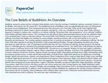 The Core Beliefs of Buddhism: An Overview. (2024, May 21). Retrieved from https://hub.papersowl.com/examples/the-core-beliefs-of-buddhism-an-overview/