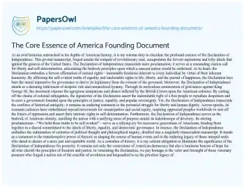 The Core Essence of America Founding Document. (2024, Mar 01). Retrieved from https://hub.papersowl.com/examples/the-core-essence-of-america-founding-document/