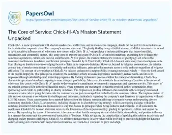 The Core of Service: Chick-fil-A's Mission Statement Unpacked. (2024, Apr 01). Retrieved from https://hub.papersowl.com/examples/the-core-of-service-chick-fil-as-mission-statement-unpacked/
