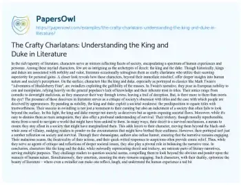 The Crafty Charlatans: Understanding the King and Duke in Literature. (2023, Oct 16). Retrieved from https://hub.papersowl.com/examples/the-crafty-charlatans-understanding-the-king-and-duke-in-literature/