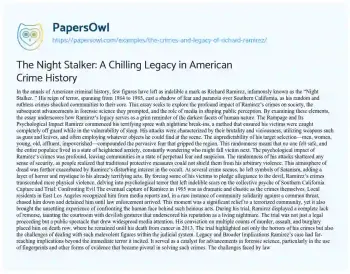 The Night Stalker: A Chilling Legacy in American Crime History. (2024, Jul 21). Retrieved from https://hub.papersowl.com/examples/the-crimes-and-legacy-of-richard-ramirez/
