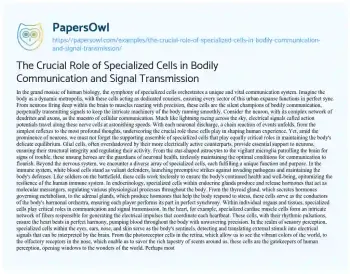 The Crucial Role of Specialized Cells in Bodily Communication and Signal Transmission. (2024, May 28). Retrieved from https://hub.papersowl.com/examples/the-crucial-role-of-specialized-cells-in-bodily-communication-and-signal-transmission/