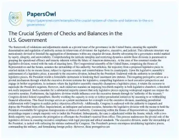 The Crucial System of Checks and Balances in the U.S. Government. (2024, May 28). Retrieved from https://hub.papersowl.com/examples/the-crucial-system-of-checks-and-balances-in-the-u-s-government/