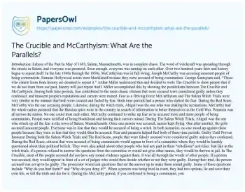 The Crucible and McCarthyism: What Are the Parallels?. (2023, Aug 17). Retrieved from https://hub.papersowl.com/examples/the-crucible-and-mccarthyism-what-are-the-parallels/