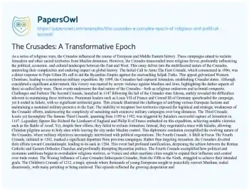 The Crusades: A Transformative Epoch. (2024, Jul 06). Retrieved from https://hub.papersowl.com/examples/the-crusades-a-complex-epoch-of-religious-and-political-turmoil/