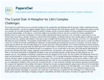 Order now However, upon closer examination, it reveals a deeper truth about the human experience. Life, much like a crystal staircase, is not always what it seems from a distance. Its beauty is intertwined with its fragility, reminding us that the most valuable paths are often the ones that require the most care, attention, and resilience. Each step we take is fraught with the potential for slip or misstep, yet it's this very vulnerability that makes the ascent worthwhile.