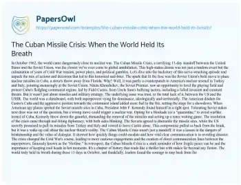 The Cuban Missile Crisis: When the World Held Its Breath. (2024, Mar 25). Retrieved from https://hub.papersowl.com/examples/the-cuban-missile-crisis-when-the-world-held-its-breath/