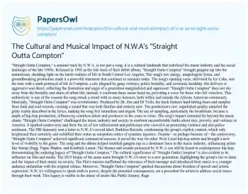 The Cultural and Musical Impact of N.W.A's "Straight Outta Compton". (2024, Jul 16). Retrieved from https://hub.papersowl.com/examples/the-cultural-and-musical-impact-of-n-w-as-straight-outta-compton/