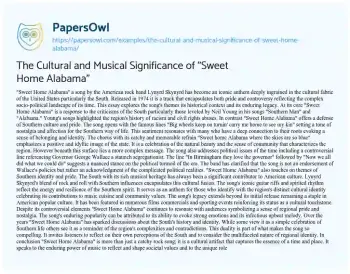 The Cultural and Musical Significance of "Sweet Home Alabama". (2024, Jul 06). Retrieved from https://hub.papersowl.com/examples/the-cultural-and-musical-significance-of-sweet-home-alabama/