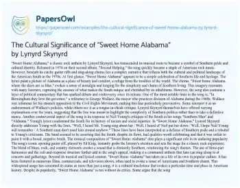 The Cultural Significance of "Sweet Home Alabama" by Lynyrd Skynyrd. (2024, Jul 21). Retrieved from https://hub.papersowl.com/examples/the-cultural-significance-of-sweet-home-alabama-by-lynyrd-skynyrd/