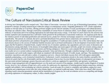 The Culture of Narcissism.Critical Book Review. (2024, Apr 22). Retrieved from https://hub.papersowl.com/examples/the-culture-of-narcissism-critical-book-review/