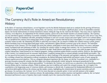 The Currency Act's Role in American Revolutionary History. (2024, Mar 18). Retrieved from https://hub.papersowl.com/examples/the-currency-acts-role-in-american-revolutionary-history/