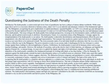 Questioning the Justness of the Death Penalty. (2023, Jun 21). Retrieved from https://hub.papersowl.com/examples/the-death-penalty-in-the-philippines-unlawful-inhumane-and-anti-poor/