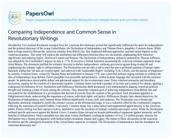 Comparing Independence and Common Sense in Revolutionary Writings. (2019, Sep 10). Retrieved from https://hub.papersowl.com/examples/the-declaration-of-independence-and-common-sense/