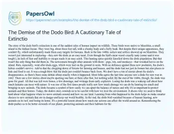 The Demise of the Dodo Bird: A Cautionary Tale of Extinctio. (2024, Jul 21). Retrieved from https://hub.papersowl.com/examples/the-demise-of-the-dodo-bird-a-cautionary-tale-of-extinctio/