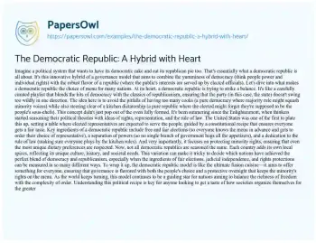 The Democratic Republic: A Hybrid with Heart. (2024, Apr 01). Retrieved from https://hub.papersowl.com/examples/the-democratic-republic-a-hybrid-with-heart/