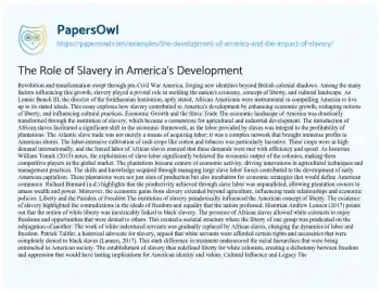 The Role of Slavery in America's Development. (2020, Feb 12). Retrieved from https://hub.papersowl.com/examples/the-development-of-america-and-the-impact-of-slavery/