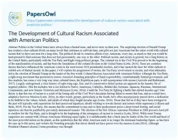 The Development of Cultural Racism Associated with American Politics. (2019, Jun 21). Retrieved from https://hub.papersowl.com/examples/the-development-of-cultural-racism-associated-with-american-politics/