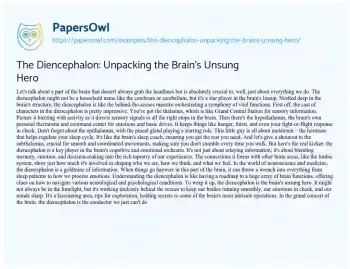 In summary, this essay unveils the unsung hero of the brain, the diencephalon, highlighting its profound influence on our daily lives and its potential significance in the realm of neuroscience and medicine. On PapersOwl, there’s also a selection of free essay templates associated with Brain.
