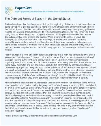 The Different Forms of Sexism in the United States. (2022, Feb 12). Retrieved from https://hub.papersowl.com/examples/the-different-forms-of-sexism-in-the-united-states/