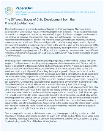 The Different Stages of Child Development from the Prenatal to Adulthood. (2022, Jun 27). Retrieved from https://hub.papersowl.com/examples/the-different-stages-of-child-development-from-the-prenatal-to-adulthood/