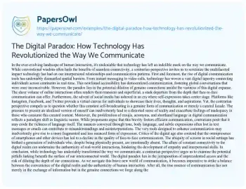 The Digital Paradox: How Technology Has Revolutionized the Way We Communicate. (2023, Dec 22). Retrieved from https://hub.papersowl.com/examples/the-digital-paradox-how-technology-has-revolutionized-the-way-we-communicate/