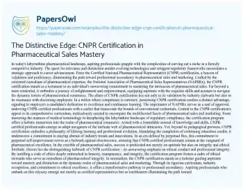 The Distinctive Edge: CNPR Certification in Pharmaceutical Sales Mastery. (2024, May 28). Retrieved from https://hub.papersowl.com/examples/the-distinctive-edge-cnpr-certification-in-pharmaceutical-sales-mastery/